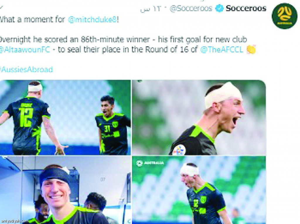 احتفى حساب الاتحاد الأسترالي لكرة القدم عبر موقع التواصل الاجتماعي “تويتر” بهدف ميشيل ديوك لاعب التعاون في شباك الدحيل القطري الذي قاد به الفريق إلى دور الـ16 من دوري أبطال آسيا.