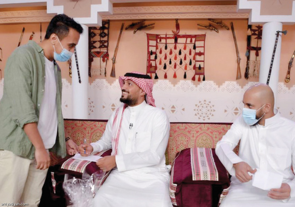 صورة التقطت أمس الأول للمذيع عبد الرحمن الحميدي خلال التحضير لإحدى حلقات برنامج الديوانية الذي تبثه القناة السعودية الرياضية يوميًّا، ويتحدث مع فريق عمل البرنامج قبل انطلاق الحلقة. تصوير: بشير صالح