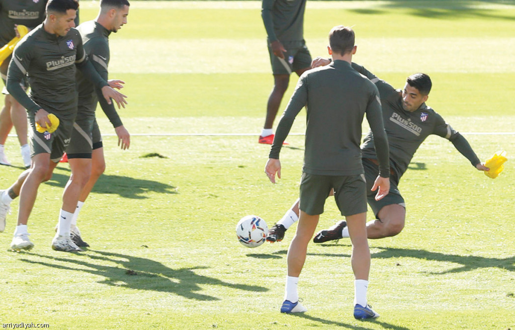 صورة التقطت أمس لسواريز المنضم حديثًا إلى أتلتيكو مدريد يجري التدريبات الجماعية استعدادًا للقاء غرناطة اليوم (المركز الإعلامي ـ أتلتيكو مدريد)