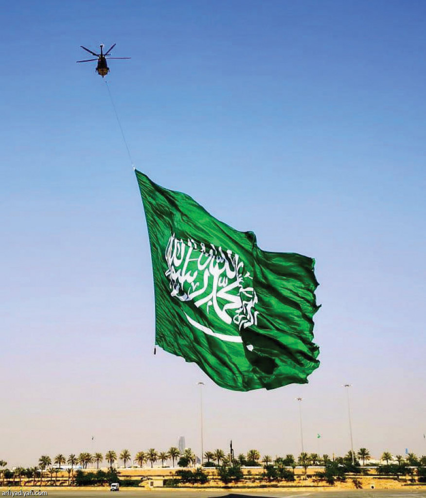 صورة التقطت السبت الماضي خلال تحليق الهليكوبتر بالعلم السعودي (الرياضية)