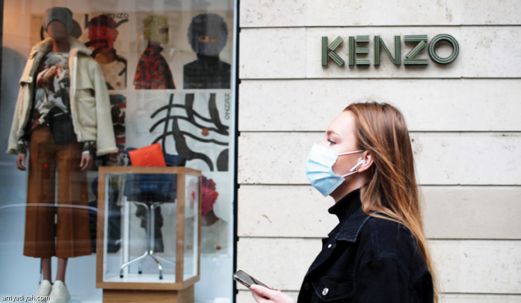 صورة التقطت أمس لامرأة تسير في باريس أمام فرع لمتجر كنزو للملابس الذي أسَّسه الياباني كنزو تاكادا المصمم الراحل بعد إصابته بفيروس كورونا المستجد(أسوشيتد برس)