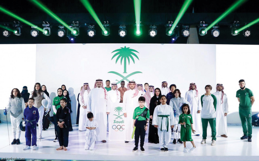 صورة التقطت أمس لعبد العزيز بن تركي الفيصل وزير الرياضة مع الرياضيين السعوديين أثناء تدشين حملة استضافة الألعاب الآسيوية 2030