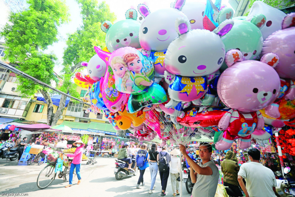صورة التقطت أمس لرجل يبيع البالونات في أحد شوارع هانوي عاصمة فيتنام بمناسبة مهرجان القمر (الأوروبية)
