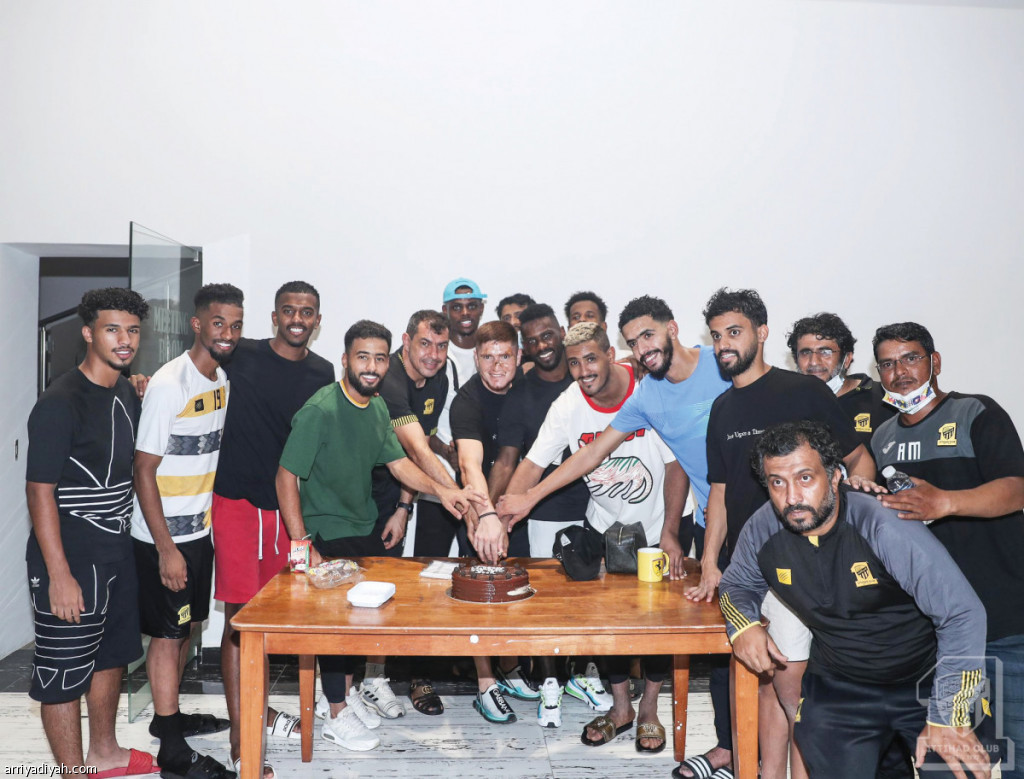صورة التقطت أمس الأول للاعبي الاتحاد خلال الحفل الذي نظَّموه لوداع الأرجنتيني ليوناردو جيل زميلهم الذي انتقل إلى فاسكو دا جاما البرازيلي بنظام الإعارة(المركز الإعلامي ـ الاتحاد)