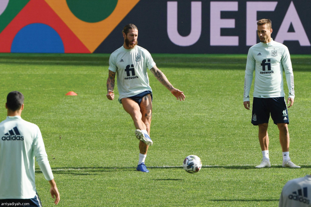 صورة التقطت أمس الأول لراموس قائد المنتخب الإسباني أثناء الحصة التدريبية (الفرنسية)