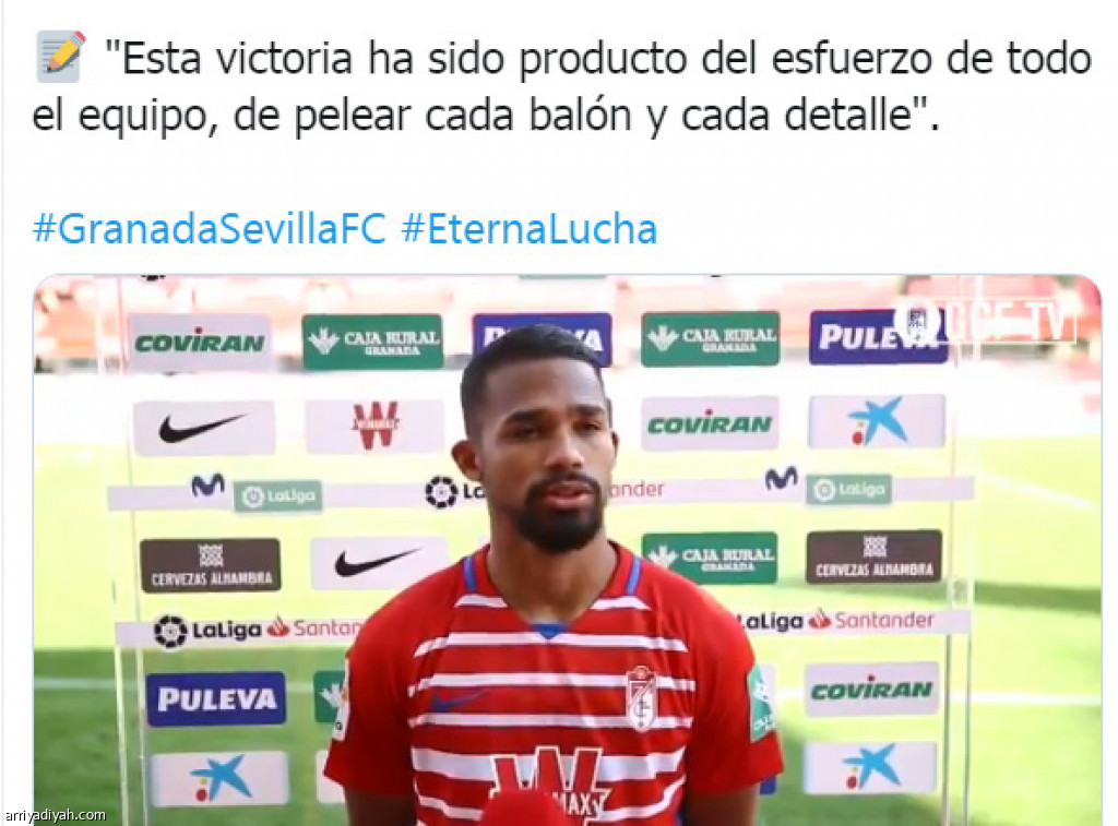 عبَّر الفنزويلي يانخيل هيريرا، لاعب فريق غرناطة الإسباني الأول لكرة القدم، عن فرحته بتسجيل هدف الفوز الوحيد في شباك إشبيلية أمس. وقال في فيديو بثَّه النادي على “تويتر”: “هذا الانتصار ثمرة جهود الفريق بأكمله”.
