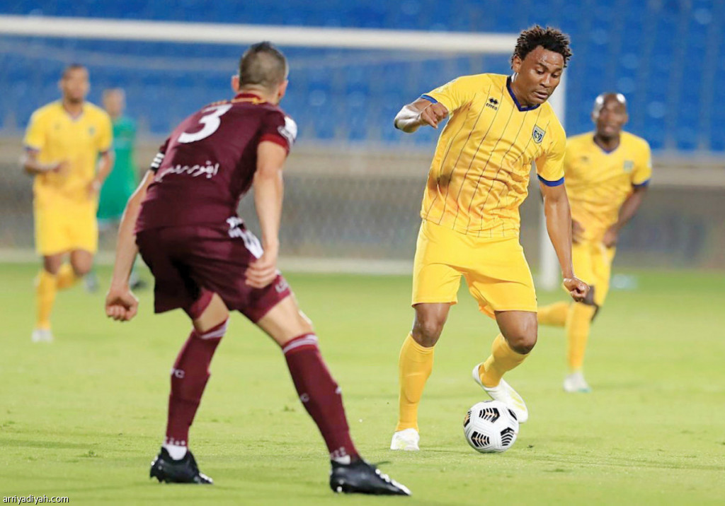 صورة التقطت أمس للكاميروني تاوامبا مهاجم التعاون يحاول تجاوز البرازيلي إيجور روسي مدافع الفيصلي تصوير: عبد العزيز السعودي