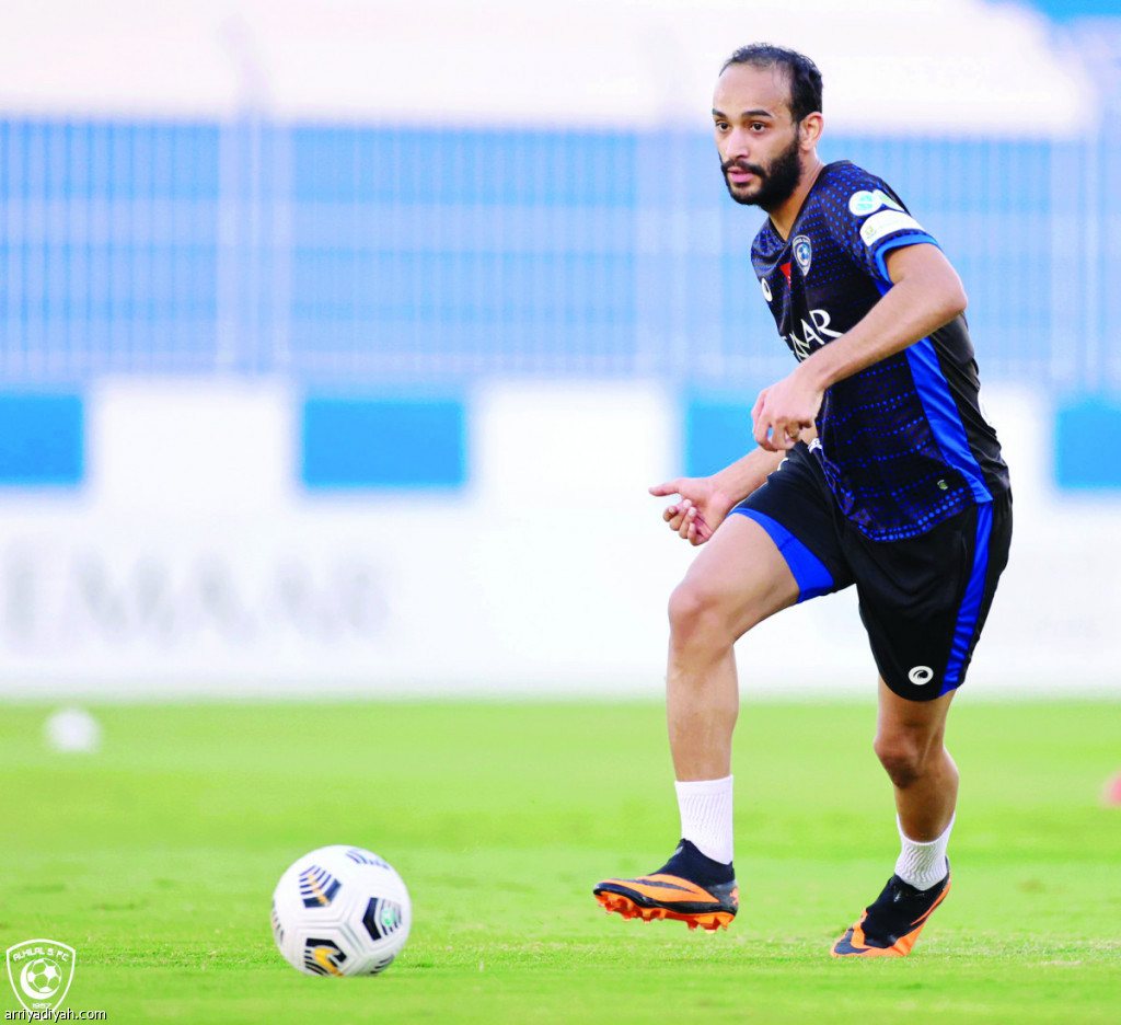 صورة التقطت أمس لعبد الله عطيف لاعب فريق الهلال يستعد لتسديد الكرة خلال التدريبات (المركز الإعلامي ـ الهلال)