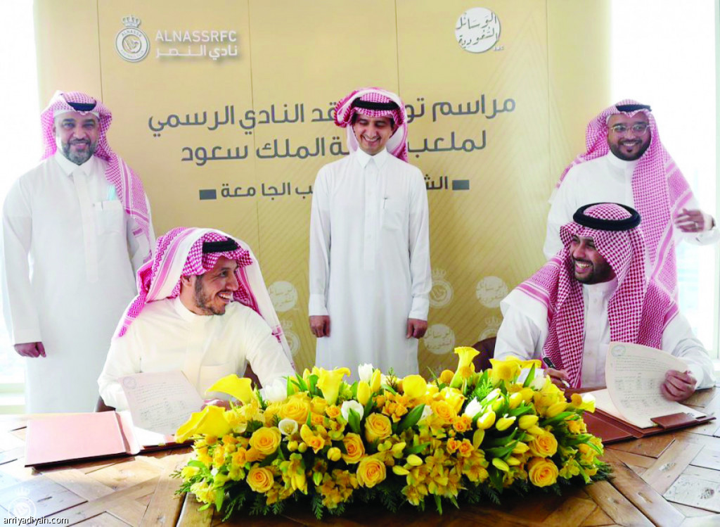 ووقع النادي والشركة، أمس، عقد تنظيم مباريات فريق النصر الأول لكرة القدم على أرضه في الملعب، الذي استأجره المستثمر في يوليو الماضي بعقد لـ 10 أعوام. ويتدارس الجانبان موعد أول مباراة للفريق في أرضه الجديدة.