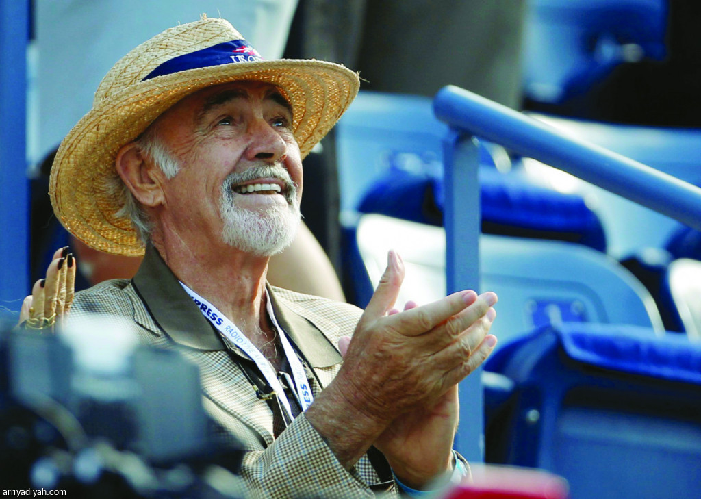 صورة التقطت في 10 سبتمبر 2012 وبثت أمس لشون كونري الممثل الراحل ينتظر بدء نهائي بطولة أمريكا المفتوحة بين الصربي نوفاك ديوكوفيتش والبريطاني آندي موراي في نيويورك (رويترز)