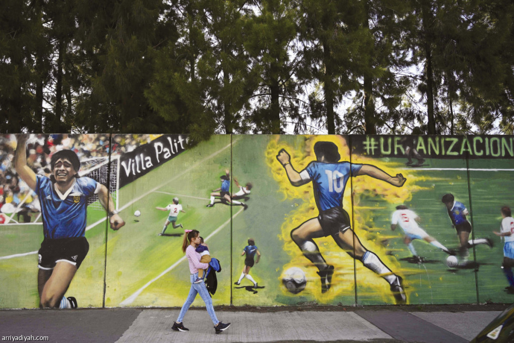 خضع دييجو مارادونا أسطورة كرة القدم لعملية جراحية في الدماغ بسبب ورم دموي استمرت ساعتين في إحدى العيادات الخاصة في بوينس آيرس.. صورة التقطت أمس الأول للوحة جدارية لـ “أوسن” رسام الشوارع تصوِّر هدف مارادونا في مرمى إنجلترا في مونديال 1986