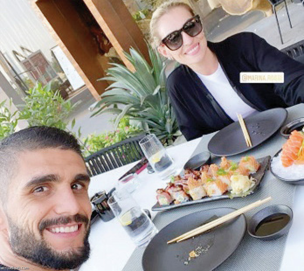 شارك البرازيلي إيجور روسي، لاعب فريق الفيصلي الأول لكرة القدم، متابعي حسابه عبر “إنستجرام”، بصورة سيلفي مع زوجته، حيث ظهرا في أحد المطاعم.