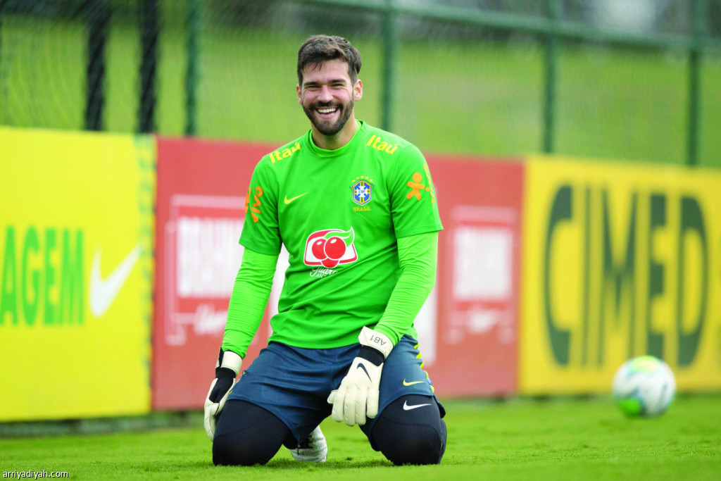 صورة التقطت أمس لأليسون بيكر أثناء الحصة التدريبية لمنتخب السامبا (حساب منتخب البرازيل - تويتر)
