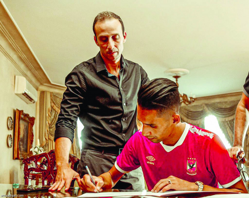 صورة التقطت أمس الأول لبانون أثناء توقيعه على عقد انضمامه إلى الأهلي المصري (المركز الإعلامي ـ الأهلي)