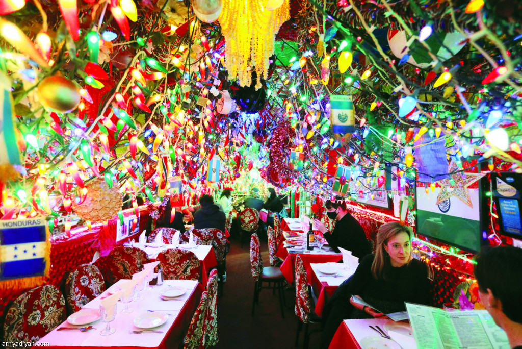 صورة التقطت أمس لزبائن يتناولون العشاء في مطعم قبل موعد الإغلاق المحدد 10 مساءً تحوطًا من كورونا في نيويورك (رويترز)