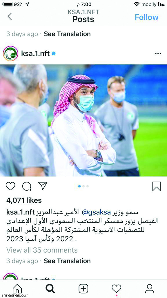 ووضع حساب المنتخب، أكثر من 39 صورة متنوعة خلال السبعة أيام الماضية، فيما شملت التغطية عدد 3 فيديوهات شاهدها أكثر من 70 ألف متابع. كما جمع فيديو سحب عينات فحص كورونا للاعبين 24.8 ألف مشاهدة. وعلى مستوى الـ“ستوري” تفاعلت جماهير الأخضر مع مقطع عبد الله الحمدان وصالح الشهري، اللذين أوضحا من خلاله افتقادهما حماس وتشجيع جمهور الأخضر خلال جائحة كورونا.