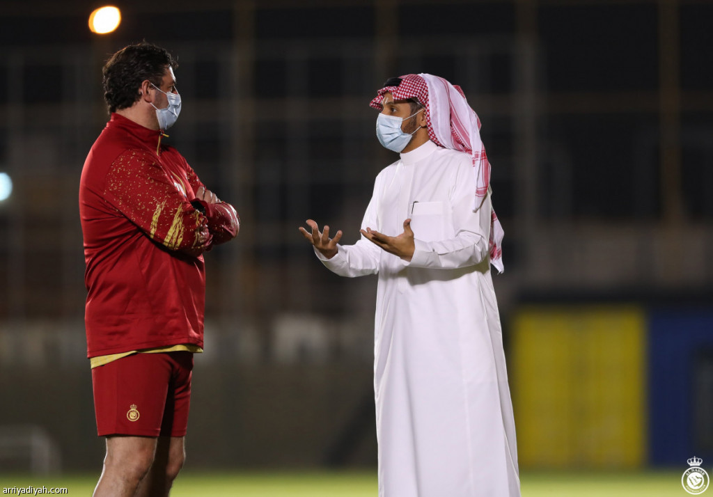 حرص الدكتور صفوان السويكت رئيس نادي النصر على الاجتماع بلاعبي الفريق الأول لكرة القدم، والجهاز الفني بقيادة البرتغالي روي فيتوريا، خلال الحصة التدريبية للفريق، الخميس.