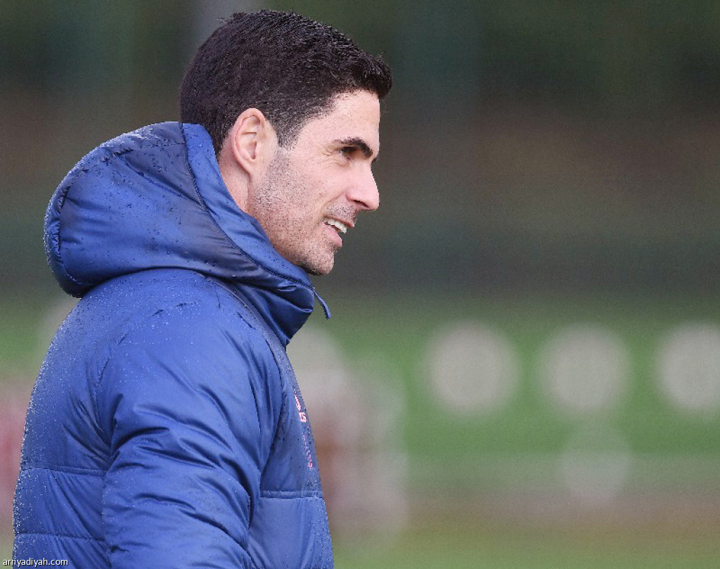 صورة التقطت أمس لأرتيتا مدرب أرسنال، أثناء الحصة التدريبية لفريقه (المركز الإعلامي ـ أرسنال)