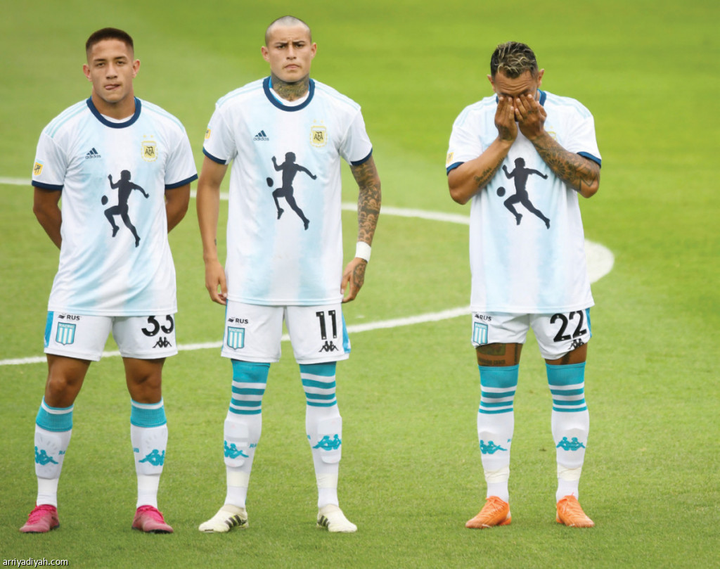 وبعد أن تحولت الملاعب الأوروبية هذا الأسبوع إلى مسرح لتكريم من يعدّ أحد أعظم اللاعبين في تاريخ اللعبة الشعبية، حان الدور الوقت أمام الفرق المحلية لكي تتذكر مارادونا في أول ظهور لها بعد الفاجعة. وكان فريقا راسينج وأونيون دي سانتا أول من يدخل أرضية الملعب في مباراتهما ضمن المرحلة الخامسة من دور المجموعات على ملعب “بريزيدنتي بيرون” في أفيادينا. ودخل اللاعبون أرضية الملعب وهم يرتدون قميص المنتخب مع الرقم 10 الذي اشتهر به مارادونا خلال مسيرته الأسطورية في الملاعب.