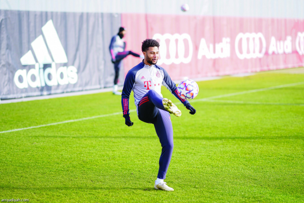 صورة التقطت أمس لجنابري أثناء الحصة التدريبية لفريق بايرن ميونيخ (حساب ميونيخ ـ تويتر)