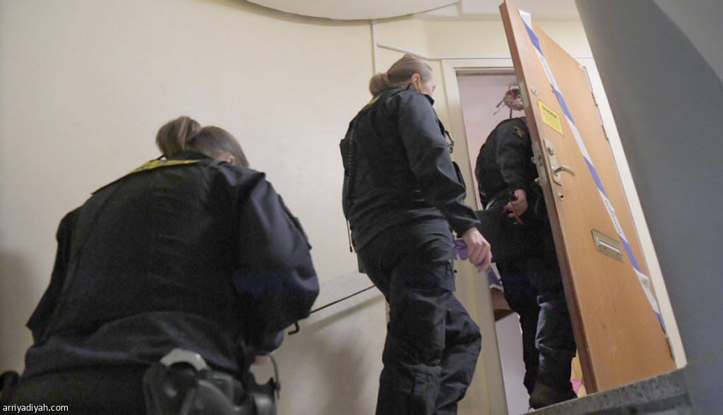 صورة التقطت أمس أثناء دخول الشرطة شقة في هانينجه جنوب ستوكهولم(الفرنسية)