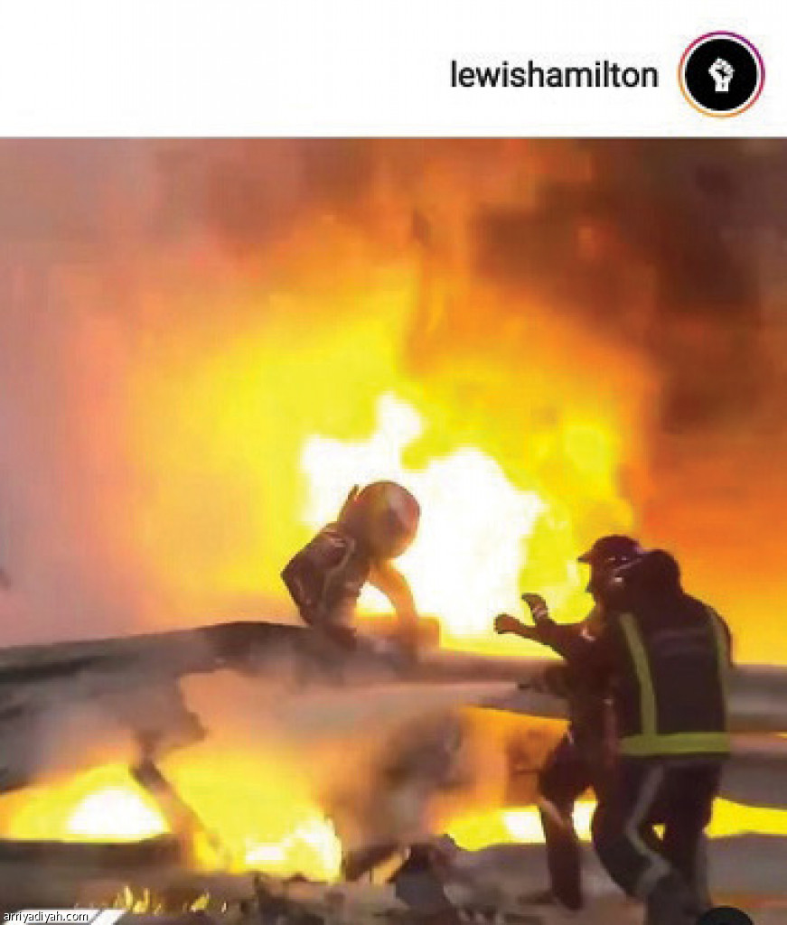 حظي الفيديو الذي نشره الإنجليزي لويس هاميلتون، بطل سباقات فورومولا 1 عبر حسابه على إنستجرام، للسويسري رومان جروجان، لحظة خروجه من سيارته التي اشتعلت فيها النيران أثناء مشاركته في سباق الجائزة الكبرى في البحرين، بأكثر من خمسة ملايين مشاهدة. وظهرت في مقطع الفيديو النيران مشتعلة بكثافة في السيارة، قبل أن يخرج منها جروجان وسط اللهب بأعجوبة أثناء عمليات الإطفاء، فيما علق قائلًا: “فخور جدًا بالشجاعة المدهشة التي أظهرها جروجان.. وشكرًا للمارشالات والفريق الطبي على جهودهم الكبيرة”.