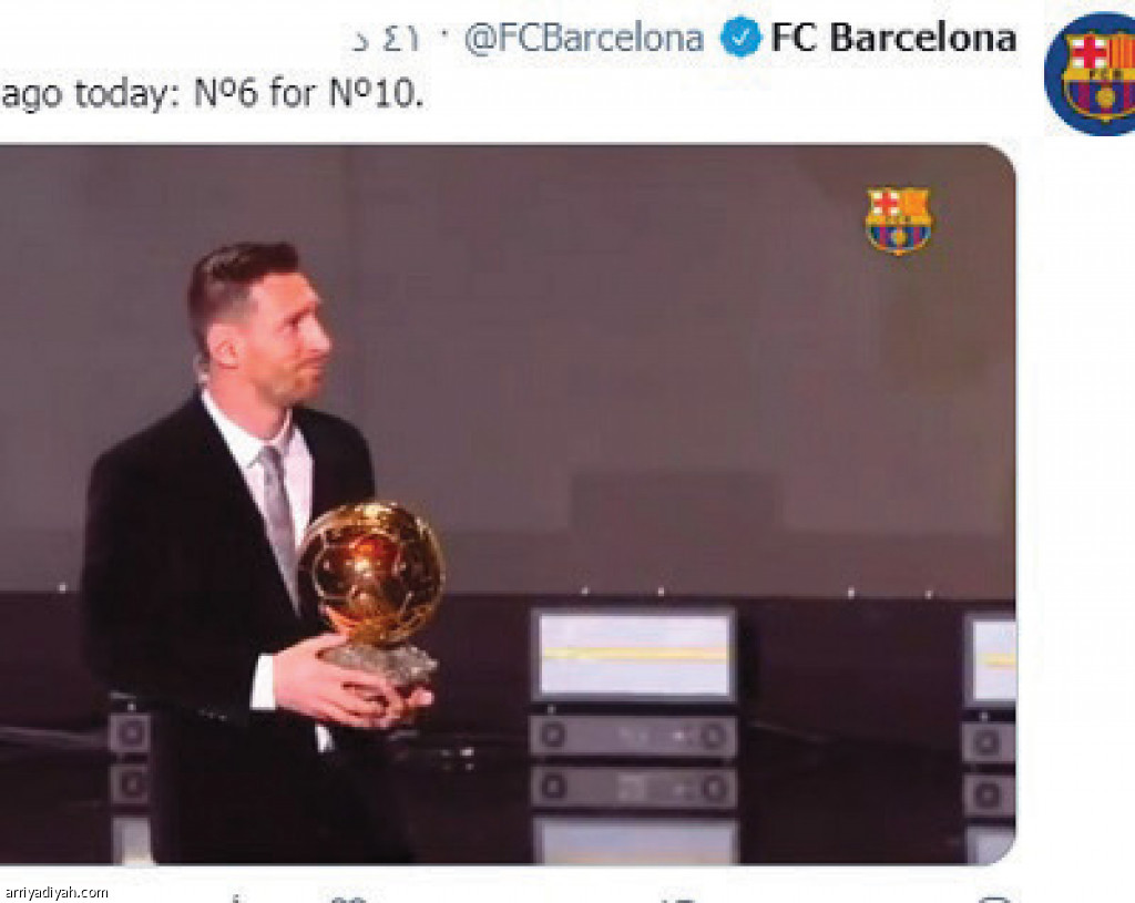 استعادت حسابات نادي برشلونة على منصات السوشال ميديا ذكرى حصول الأرجنتيني ليونيل ميسي لاعب الفريق الأول لكرة القدم على الكرة الذهبية السادسة والتي صادفت أمس. ونشرت الحسابات فيديو لحظة إعلان اسم ميسي فائزًا بالجائزة وصعوده إلى المنصة والكلمة التي ألقاها أمام الحضور وعلقت قائلة “منذ عام مضى”، فيما بلغت المشاهدات 1.6 مليون.