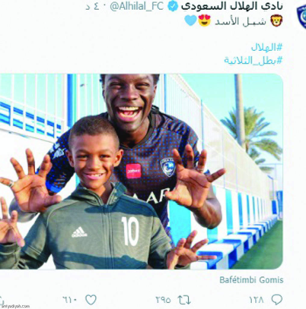 بث حساب نادي الهلال على موقع التواصل الاجتماعي “تويتر”، صورة للفرنسي بافيتمبي جوميز، مهاجم الفريق الأول لكرة القدم، ظهر فيها مع ابنه، فيما علّق قائلًا: “شبل الأسد”.