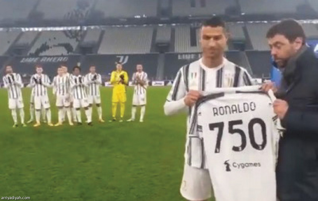 وظهر في الفيديو أندريا أنييلي رئيس يوفنتوس يمنح رونالدو قميصًا برقم 750 بينما كان زملاؤه اللاعبون يصفقون له فيما علق بقوله “لم أستطع فعل ذلك من دون مساعدتكم يا رفاق”.