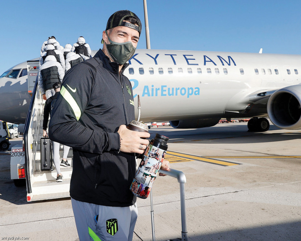 صورة التقطت أمس للأوروجوياني لويس سواريز مهاجم فريق أتلتيكو مدريد لدى مغادرة بعثة الفريق إلى النمسا، لملاقاة سالزبورج (المركز الإعلامي ـ أتلتيكو مدريد)