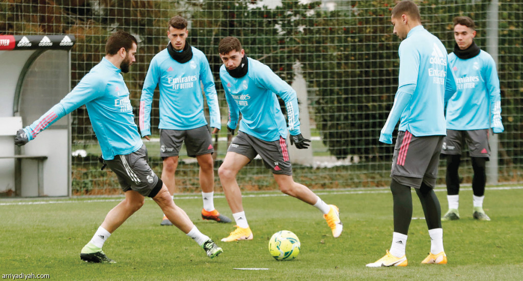 صورة التقطت أمس للاعبي ريال مدريد في الحصة الاسترجاعية استعدادًا لديربي العاصمة الإسبانية غدًا أمام أتلتيكو مدريد في الدوري الإسباني (المركز الإعلامي ـ ريال مدريد)