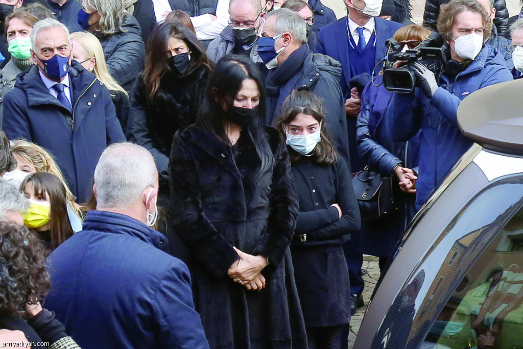 صورة التقطت أمس الأول لفيدريكا كابيليتي مع الأقارب والأصدقاء والمعجبين خلال جنازة روسي في فيتشينزا في إيطاليا(الأوروبية)