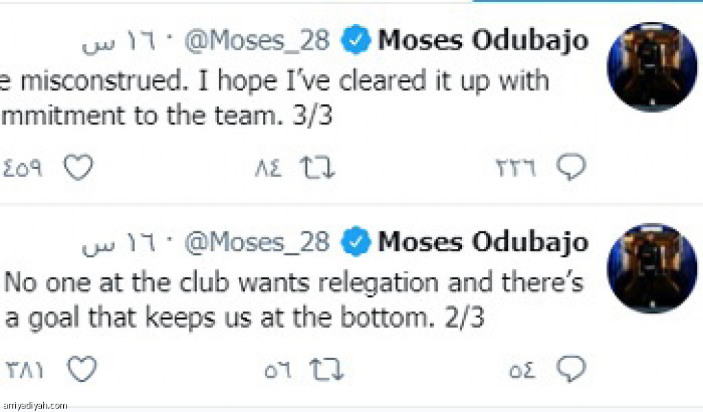 اعتذر الإنجليزي موسيس أودباجو، لاعب فريق شيفيلد يونايتد الإنجليزي، عبر حسابه على “تويتر” عن الفيديو الذي ظهر فيه يبتسم مع مواطنه لويس جرابان، لاعب نوتينجهام، بعد تسجيله هدفًا في شباكهم. وقال أودباجو: “قلت لجرابان هذا الهدف خطأ وضحكت عليه معتقدًا أن الحكم سيلغيه.. نحن في قاع الدوري، ولا توجد فرصة للاحتفال بهدف يبقينا في هذا المركز”.