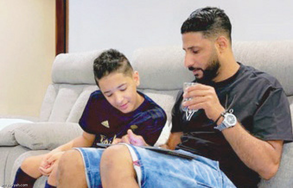 استعرض ياسر المسيليم، حارس فريق الأهلي الأول لكرة القدم، عبر حسابه على سناب شات صورة له ظهر فيها يراجع الدروس مع ابنه، فيما نشر له صورة أخرى يدربه بالكرة.
