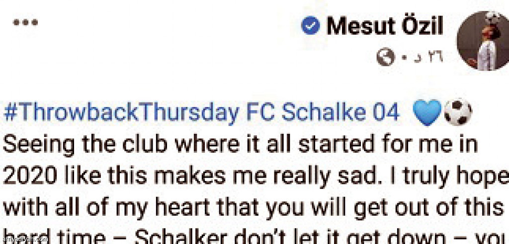 حظيت تدوينة الألماني مسعود أوزيل، لاعب فريق أرسنال ، في حسابه على “فيسبوك”، بتفاعل كبير، حيث جدد فيها حزنه على إبعاده من اللعب، وتمنياته في عودة الفريق إلى الانتصارات . وقال الدولي السابق، في تدوينته: “أحترم رؤية المدرب بإبعادي، وهو ما جعل كل شيء بالنسبة لي في عام 2020 حزينًا.. آمل حقًا من كل قلبي أن تخرجوا من هذا الوقت الصعب”.