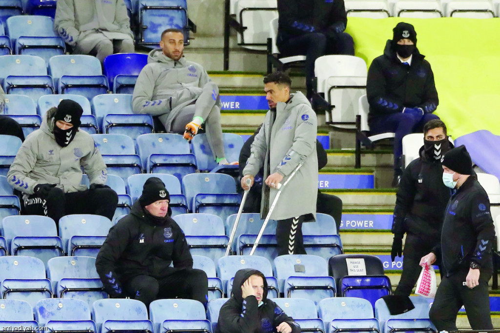 شاهد البرازيلي ألان لاعب خط وسط إيفرتون مباراة فريقه أمام ليستر سيتي من المدرجات مع زملائه الذين كانوا خارج التشكيلة، والتي انتهت بفوز فريقه 2ـ0.. صورة التقطت أمس الأول يبدو ألان يشق طريقه في المدرجات ويمشي بعكازين