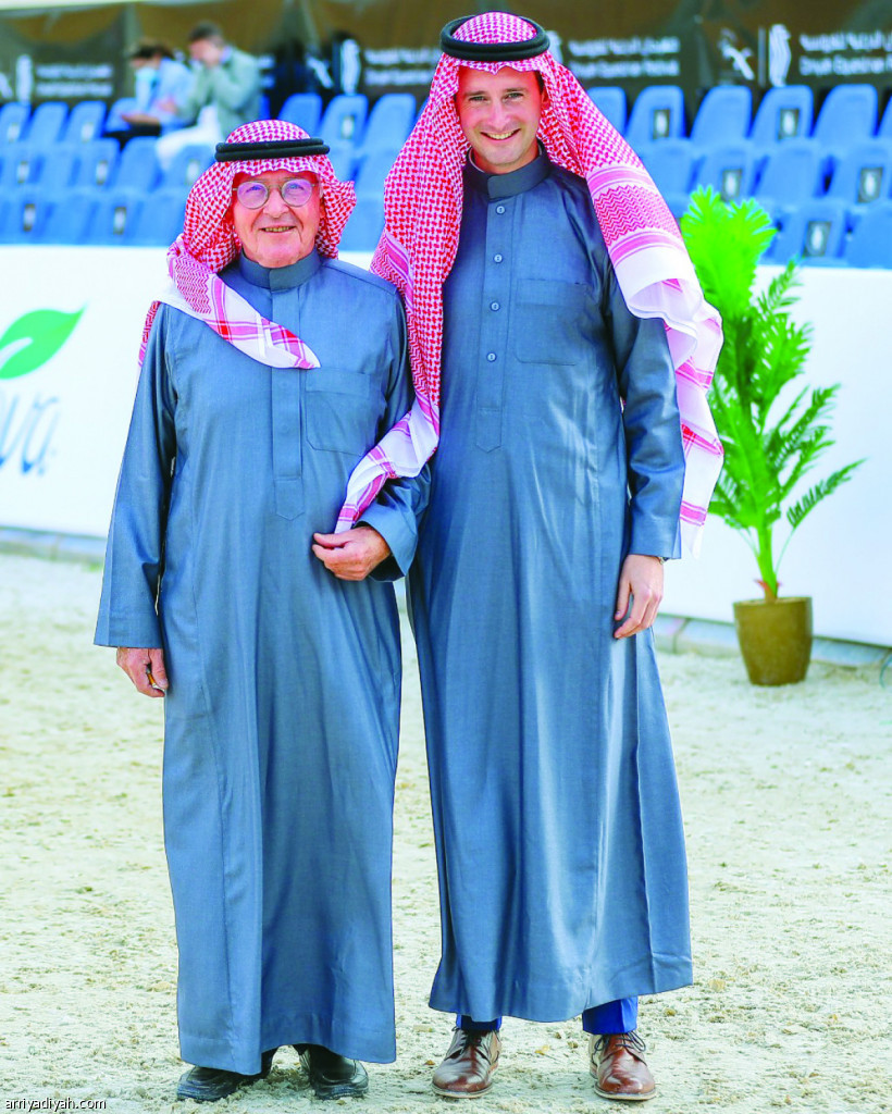 صورة التقطت أمس للبلجيكي جون بير ومواطنه جوس فيرلوي خلال حضورهما مهرجان الدرعية بالزي السعودي(المركز الإعلامي ـ الفرنسية)