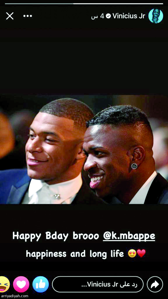 هنأ البرازيلي فينيسيوس، مهاجم فريق ريال مدريد، الفرنسي كيليان مبابي، هداف باريس سان جيرمان الفرنسي، بذكرى ميلاده الـ 20، وكتب على “فيسبوك”: “ذكرى ميلاد سعيد.. أرجو لك السعادة والعمر الطويل”.