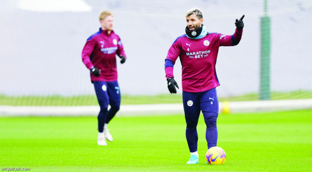 صورة التقطت أمس للأرجنتيني سيرجيو أجويرو والبلجيكي كيفين دي بروين لاعبي فريق مانشستر سيتي الأول لكرة القدم خلال التدريبات الجماعية استعدادًا للقاء أرسنال اليوم ضمن مباريات الدور ربع النهائي لكأس الكاراباو (المركز الإعلامي ـ مانشستر سيتي)