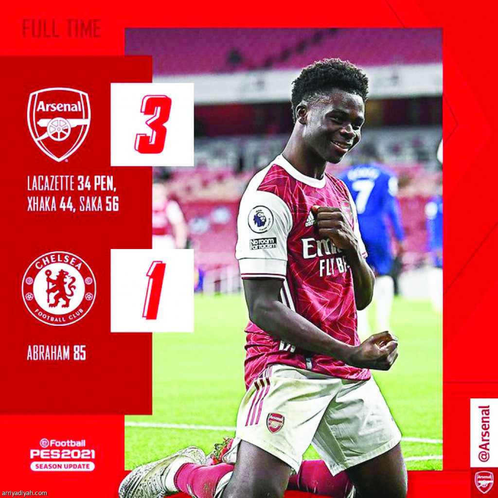 أنهى حساب نادي أرسنال الإنجليزي على تويتر متابعته لمواجهة تشيلسي، أمس، والتي انتهت بفوز المدفعجية 3ـ1، بلوحة نتيجة المبارة تتصدرها صورة باكايو ساكا الذي أنهى آمال البلوز في العودة بتسجيله الهدف الثالث. وعاد الفريق إلى سكة الانتصارات في الدوري أخيرًا وأمام الجار اللدود، وكان واضحًا من التفاعل الكبير لمباراة على تويتر، والذي بلغ أكثر من 120 ألفًا، الفرحة الغامرة للمشجعين بهذا الفوز المهم.