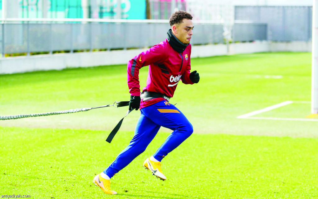 صورة التقطت أمس للأمريكي سيرجينيو ديست الظهير الأيمن لفريق برشلونة خلال الحصة التدريبية للفريق استعدادًا لمباراة إيبار اليوم (المركز الإعلامي - برشلونة)