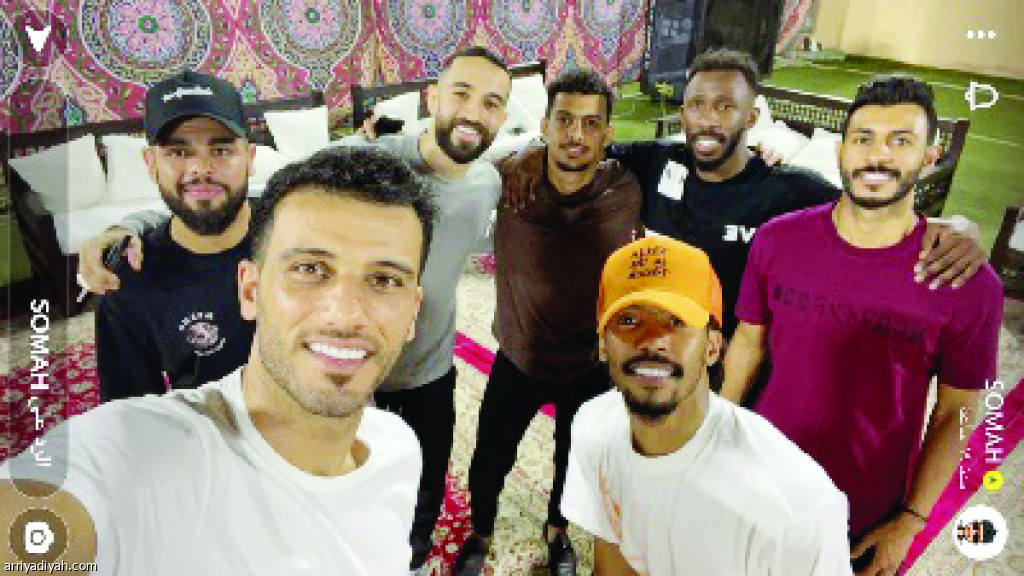 بثَّ السوري عمر السومة، مهاجم فريق الأهلي الأول لكرة القدم، في حسابه على “سناب شات”، صورة سيلفي جماعية مع عدد من زملائه، وذلك خلال الحفل الذي نظَّمه طلال عبسي للاعبين في أحد الشاليهات.