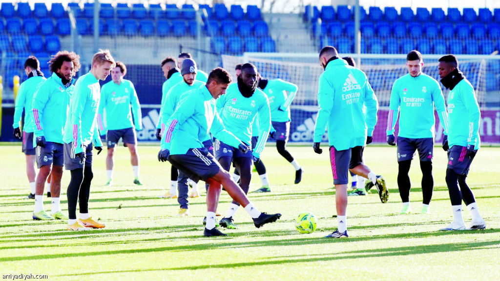 صورة التقطت أمس للاعبي ريال مدريد أثناء الحصة التدريبية استعدادًا لمواجهة سلتا فيجو(حساب ريال مدريد - تويتر)