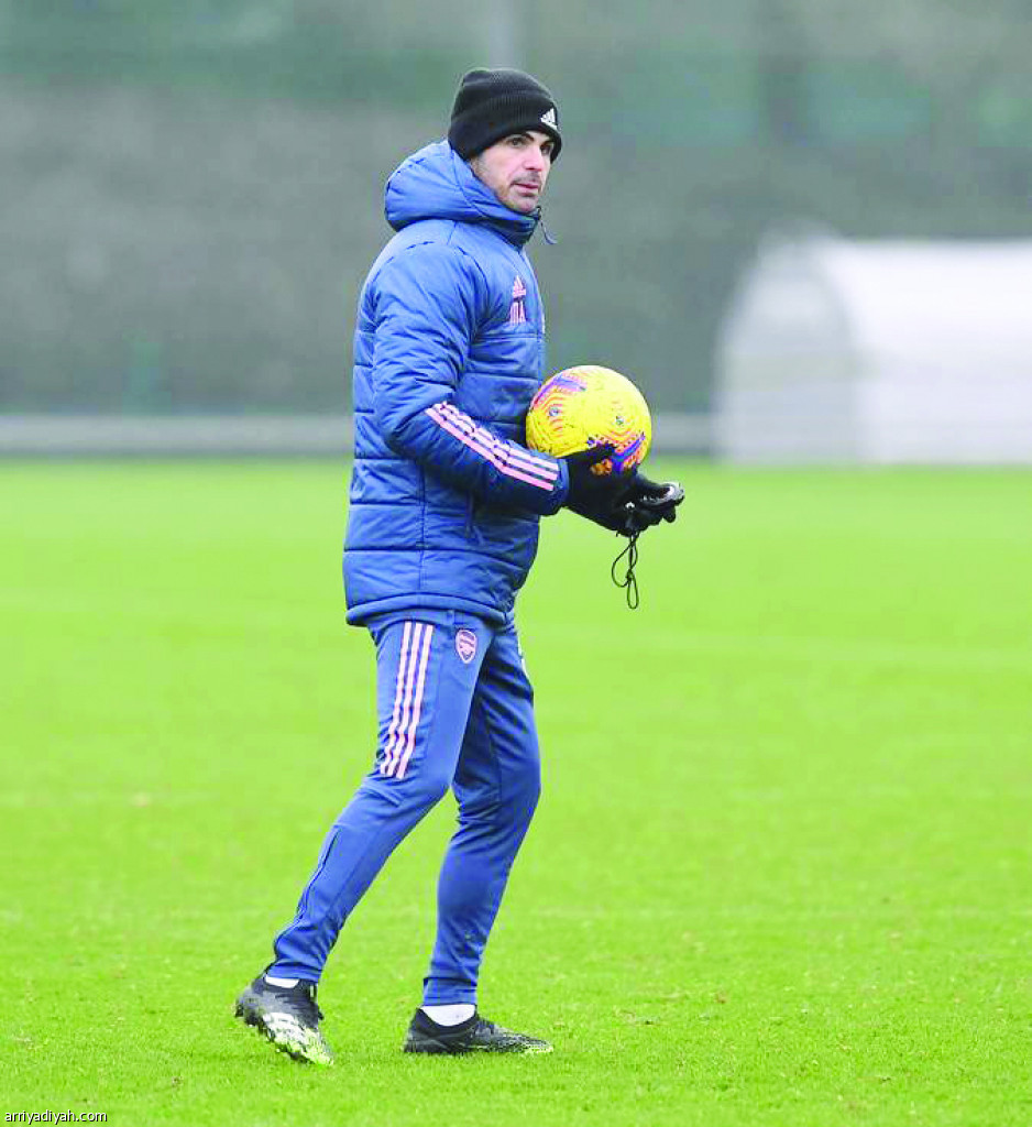 صورة التقطت أمس لميكيل أرتيتا مدرب فريق أرسنال خلال التدريبات الجماعية( المركز الإعلامي - أرسنال)