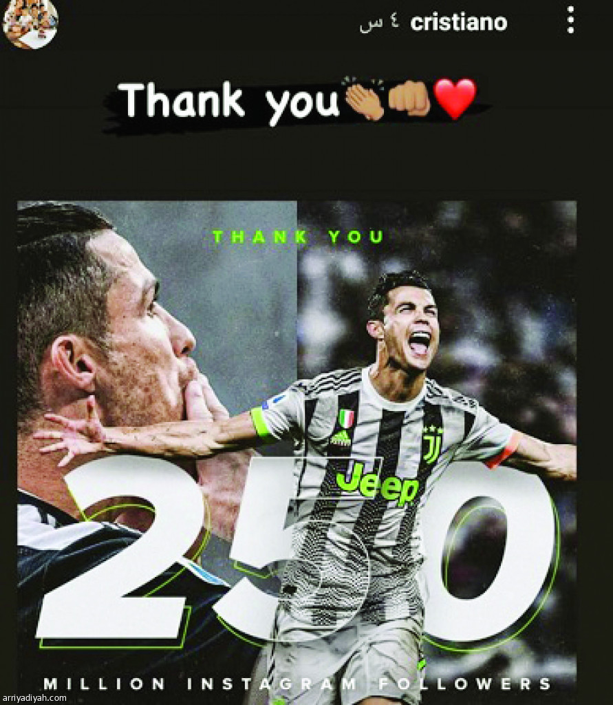 واحتفى رونالدو بوصوله هذا الرقم من خلال نشره بوستًا يتضمن صورته ورقم 250، فيما علّق قائلًا: “يا له من رقم لا يصدق.. شكرًا لكم جميعًا، أنتم جزء من هذه الرحلة”، ليحصل بعدها على مليون متابع خلال ساعات.