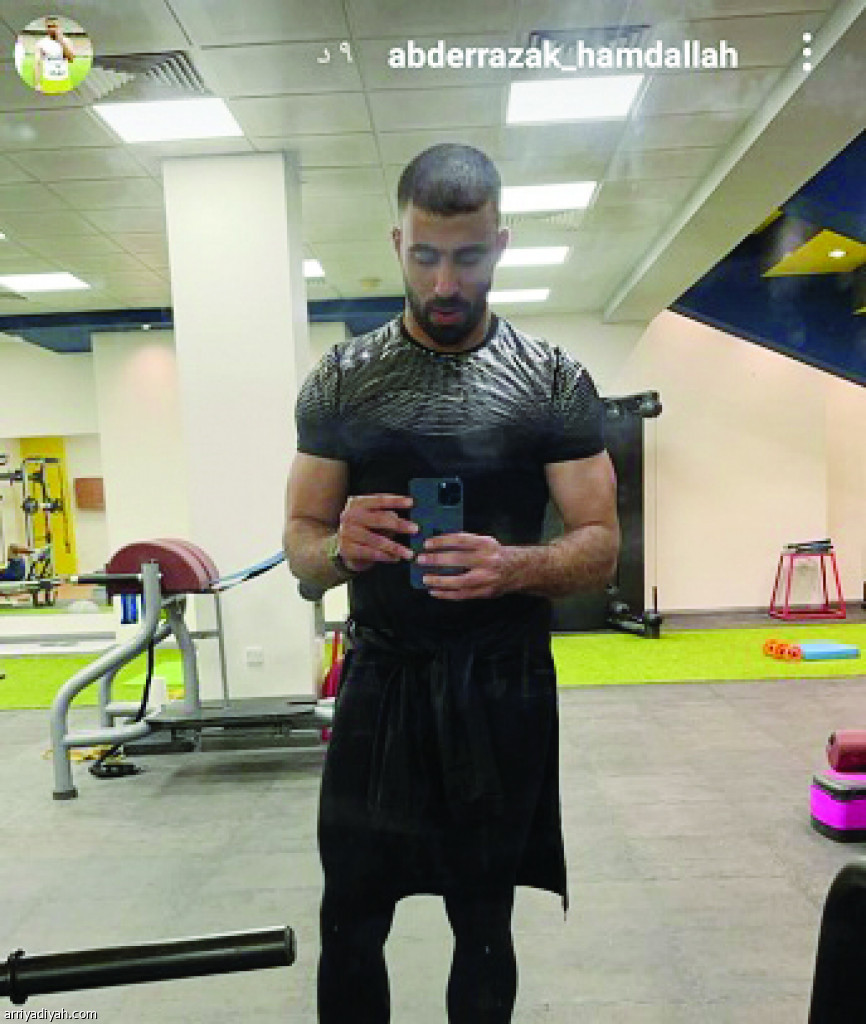 شارك المغربي عبد الرزاق حمد الله، مهاجم فريق النصر الأول لكرة القدم، متابعي حسابه عبر إنستجرام بصور من تدريباته في الصالة، مع توثيق الوقت الذي يقضيه من خلال الساعة التي يرتديها.