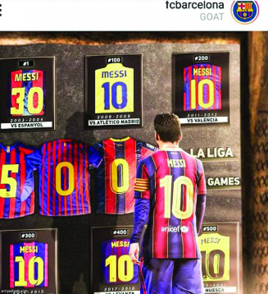 احتفت حسابات نادي برشلونة على منصات السوشال ميديا بخوض الأرجنتيني ليونيل ميسي، لاعب الفريق الأول لكرة القدم، 500 مباراة في الليجا، حيث نشرت صورة تعبيرية ظهر فيها اللاعب ينظر إلى القمصان التي خاض بها مباريات الأرقام المميزة.