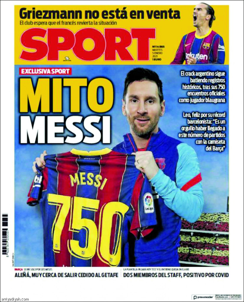 وبات ميسي على بعد 17 مباراة من تحطيم الرقم القياسي لتشافي هيرنانديز “765”. من جهة أخرى، فعّل برشلونة خيار التمديد وجدد عقد الإسباني ريجي بويج “21 عامًا” لاعب الوسط لعامين حتى يونيو 2023، بحسب صحيفة “موندو ديبورتيفو” أمس.