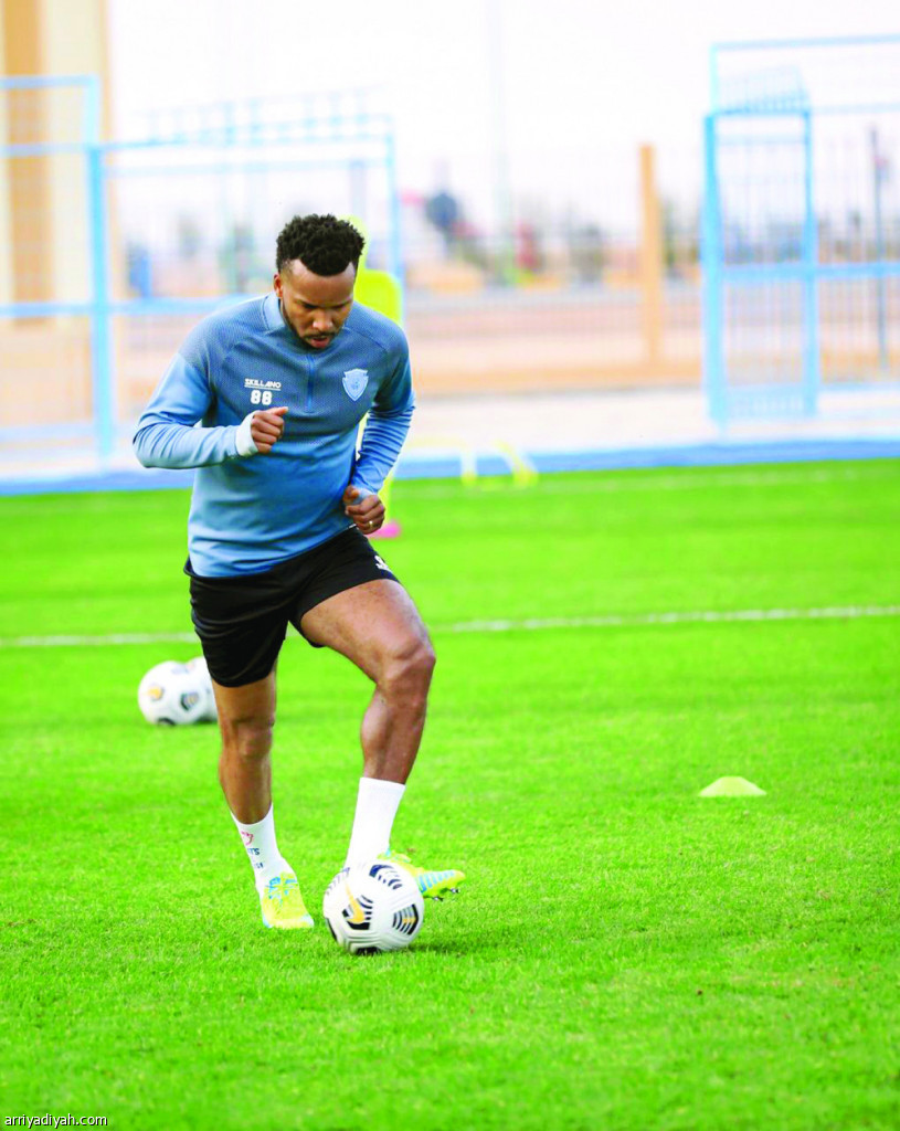 صورة التقطت أمس للترينيدادي هايلاند لاعب الباطن خلال التدريبات (المركز الإعلامي ـ الباطن)