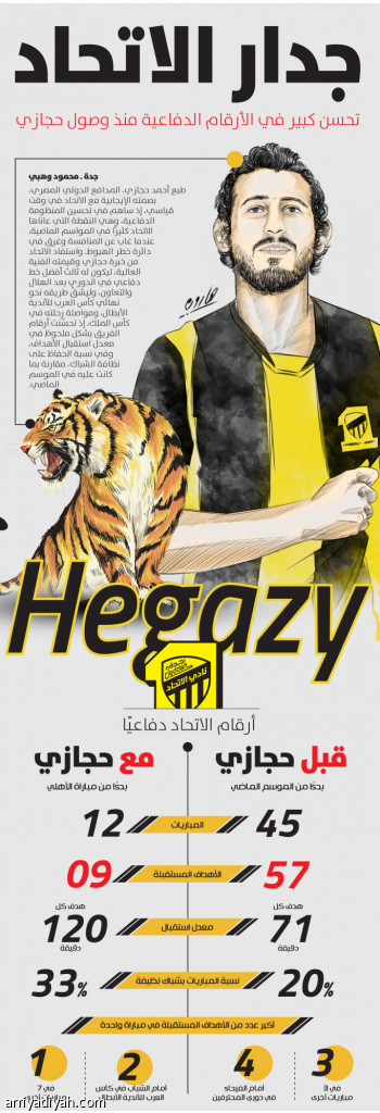 طبع أحمد حجازي، المدافع الدولي المصري، بصمته الإيجابية مع الاتحاد في وقت قياسي، إذ ساهم في تحسين المنظومة الدفاعية، وهي النقطة التي عاناها الاتحاد كثيرًا في المواسم الماضية، عندما غاب عن المنافسة وغرق في دائرة خطر الهبوط. واستفاد الاتحاد من خبرة حجازي وقيمته الفنية العالية، ليكون له ثالث أفضل خط دفاعي في الدوري بعد الهلال والتعاون، وليشقّ طريقه نحو نهائي كأس العرب للأندية الأبطال، ومواصلة رحلته في كأس الملك، إذ تحسّنت أرقام الفريق بشكل ملحوظ في معدل استقبال الأهداف، وفي نسبة الحفاظ على نظافة الشباك، مقارنة بما كانت عليه في الموسم الماضي.
